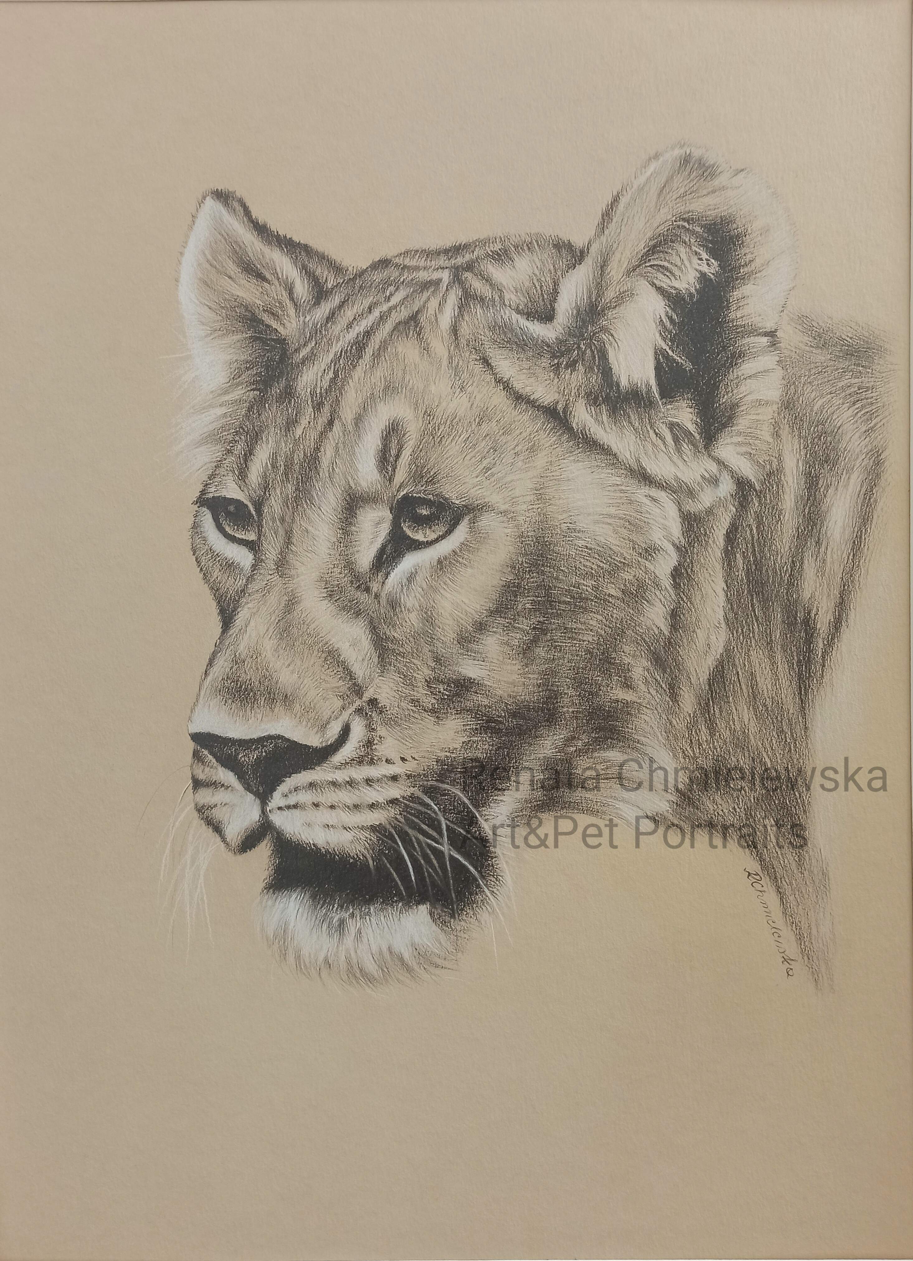 Ołówkiem rysowałam już w dzieciństwie. Pozwala podkreślić kontrasty na rysunkach, wydobyć głęboką czerń. Prace dostępne są w różnych formatach, na papierze zupełnie gładkim lub lekko fakturowanym, Możliwe jest również zamówienie pracy ołówkiem i białą kredką na papierze barwionym w kolorze szarym lub ciepłej ochry. Prace wymagają oprawy za szkłem.